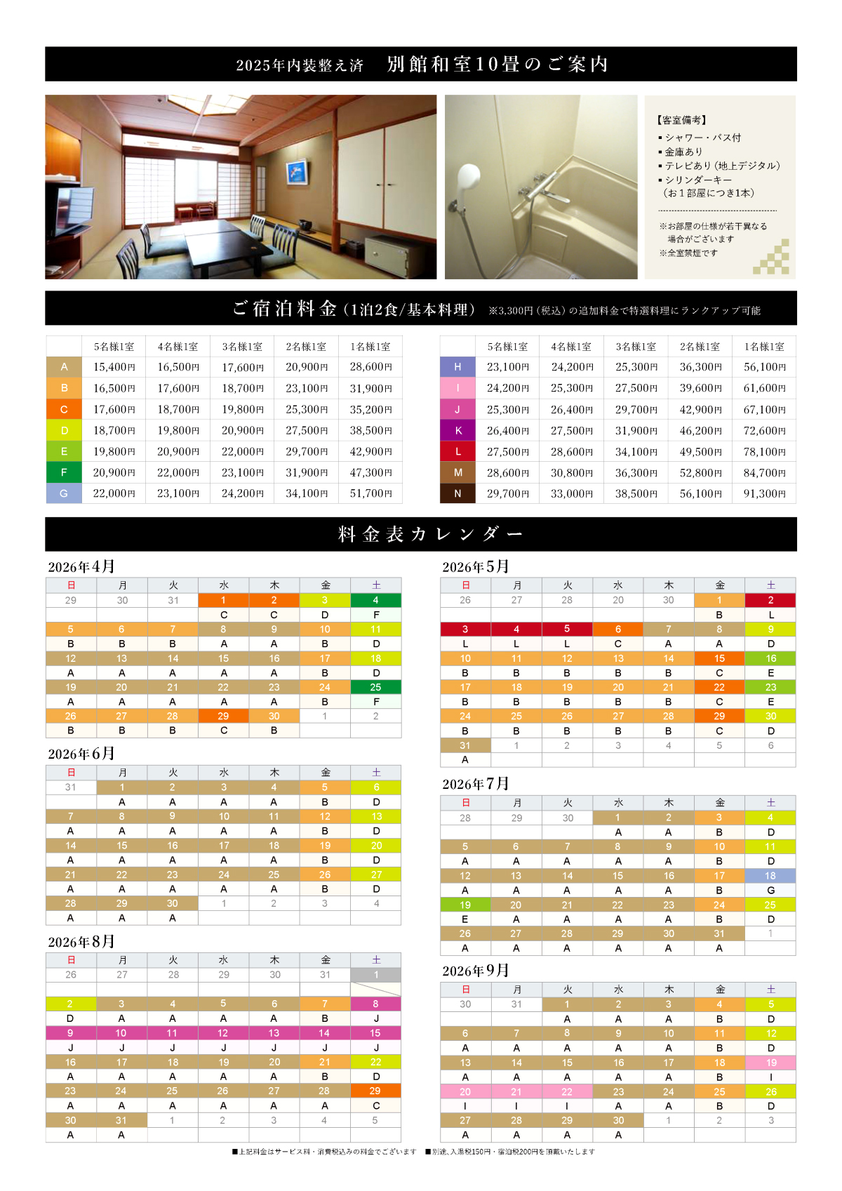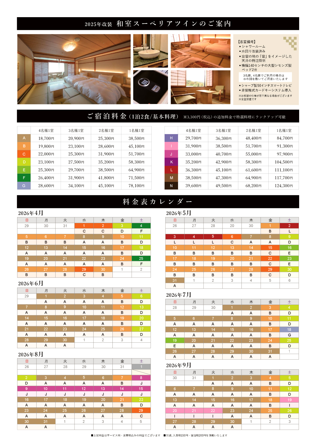 - 料金(サービス料・消費税・入湯税込)