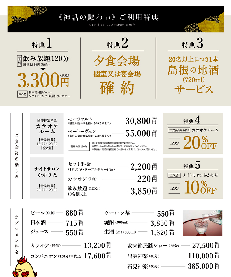 ※入湯税150円・宿泊税200円を含みます。 - 特典